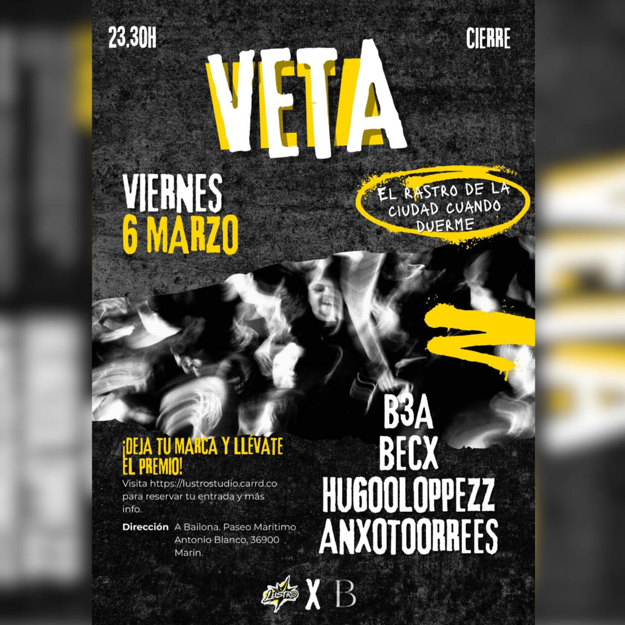 Al participar en los eventos organizados por la Asociación Lustro (LSV), el usuario entiende y acepta que se podrán realizar fotografías y grabaciones de vídeo con fines de difusión de las actividades de la asociación en nuestras redes sociales (Instagram, TikTok, etc.) y página web.Si no deseas aparecer en dicho material o quieres solicitar la retirada de una imagen específica donde aparezcas, puedes comunicárnoslo en cualquier momento a nuestro email de contacto y procederemos a su eliminación inmediata.3. Política de CookiesPolítica de Cookies